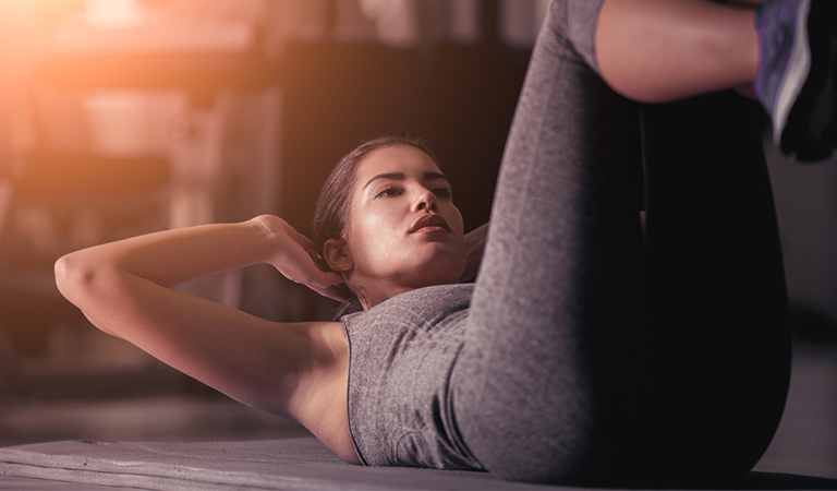 Now you will do chair sit-ups. Lie down on your back and raise your legs as if you were sitting on a chair. You want to keep your legs up and cross your legs just the way you’d do on a chair. And then start doing the regular sit-ups. Bring your upper body up using the strength of your abdominal muscles. This way you’re automatically engaging the core. This is one of the most extreme ab workouts, so beginners might have a hard time doing it. If you’re just starting out, don’t stress yourself on your first try. The timing is the same for this one like the others on the list.