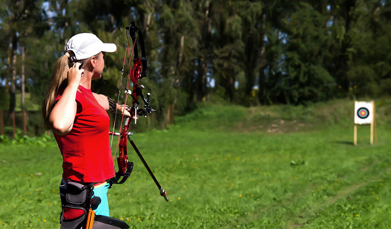• You need to stand strong and still for accurate shooting. Keep eyes on the target and don’t move much; otherwise, you can shoot an arrow off-target.