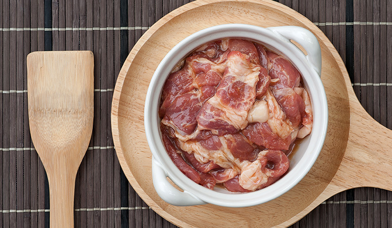 - Place the red meat and water in ratios 5:4 in the pressure cooker.