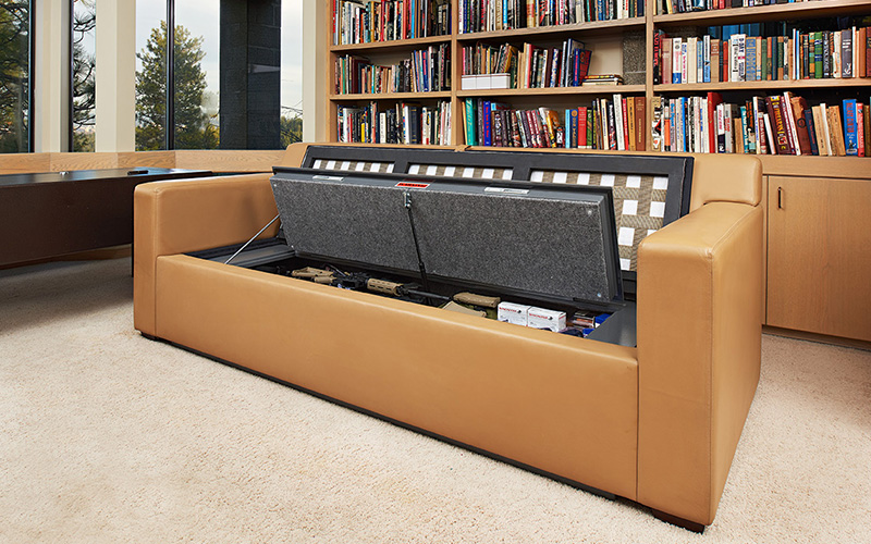No, this doesn’t belong to the walk-in gun safe ideas. You are going to free some space under your couch or sofa and install a gun safe there. The cushions provide good opportunity to store the guns safely under them. Don’t put a safe that’s too large under the cushions or it will appear bulgy. You don’t want anybody to look at your couch with suspicion. Although it’s a great idea, it will cost you more than the other options. The soft cushions will provide safety to the gun safe underneath and it won’t be a problem if everyone in the family sits on the couch.