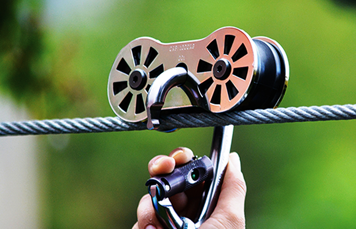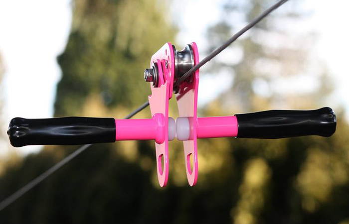 The trolley rests on the zip line cable, and what the rider will use to connect to the system. These vary from a single pulley with a handlebar attached to it for low-height children’s systems to lightweight, high tech multi-pulley systems that will achieve fast speeds safely. There are many options to examine when