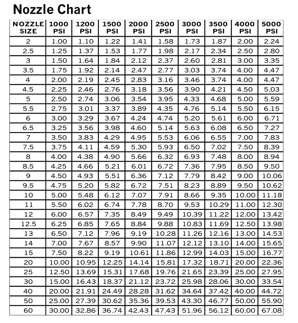 - If the nozzle size is too small, it can cause severe damage to the equipment